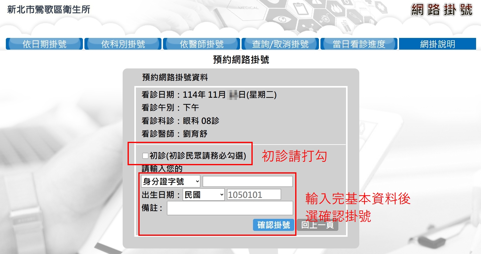2.本門診採網路預約及電話預約,預約額滿截止。